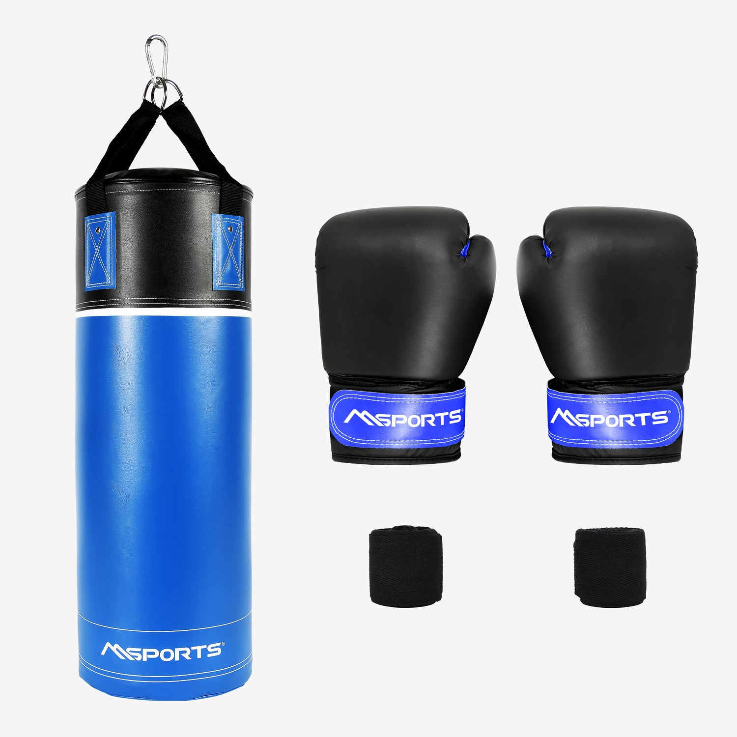 Mit diesem Boxsack Set aus Kunstleder und einer Nylon-Aufhängung trainieren Kinder und Jugendliche effektiv den gesamten Körper.