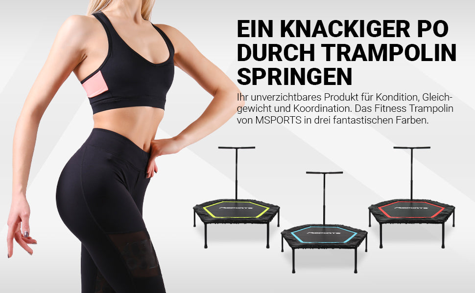 Mit dem Fitness Trampolin wird nicht nur dein gesamter Körper gestärkt, sondern auch Kondition, Gleichgewicht und Koordination trainiert.
