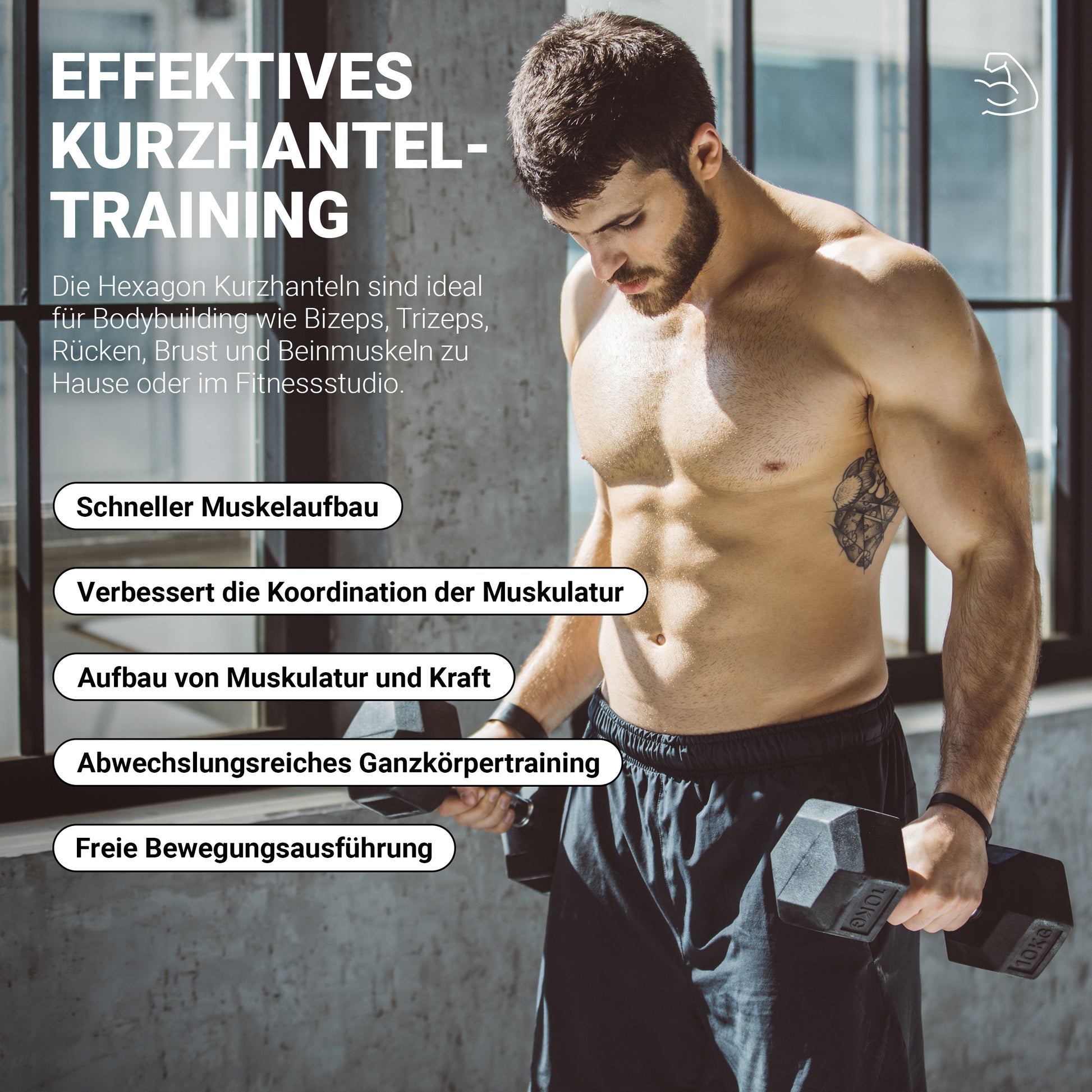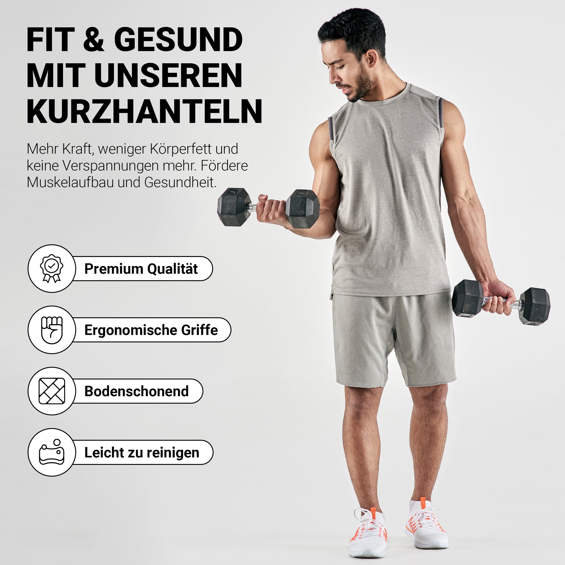 Mit den Kurzhanteln lässt sich dein Workout variieren und vielseitiger gestalten, für straffere Oberarme und stärkere Brustmuskeln.